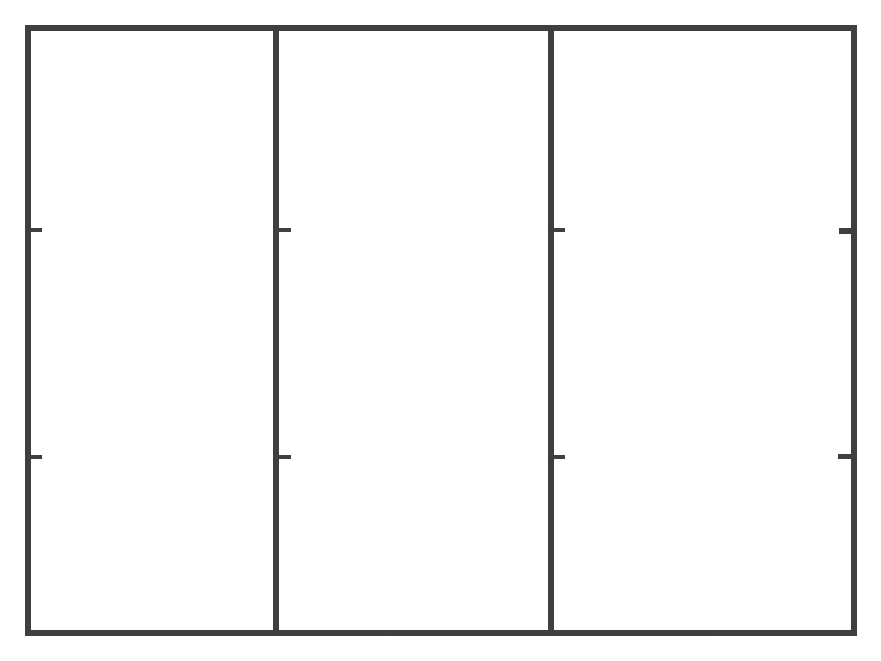 On each vertical line, working from top to bottom, measure and mark the at 8 ½” (21.5cm) intervals. The markings on your paper should resemble those in this diagram, with five inches (13cm) remaining at the bottom of the paper.