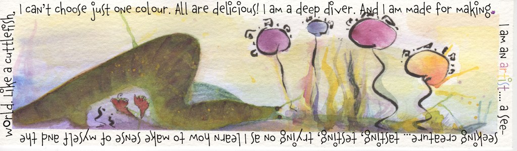 When creating the paintings in this book, I chose colors at random, without an agenda. I wanted to go with the flow. To explore and express. Watercolor was the perfect medium. It may be for you, as well.