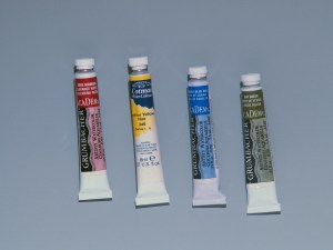 Paints: Grumbacher Academy Artists’ Watercolors comprise most of the tube paints in my personal collection.* They are good quality, cost-effective, and come in a large variety of colours. I also have a few Winsor & Newton tubes, both Artists’ Watercolor and the more economical Cotman.